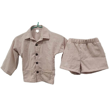 OEM High Quality Cotton and Linen Fabric Girls Clothing Sets Includes Shirt Suit with Buttons