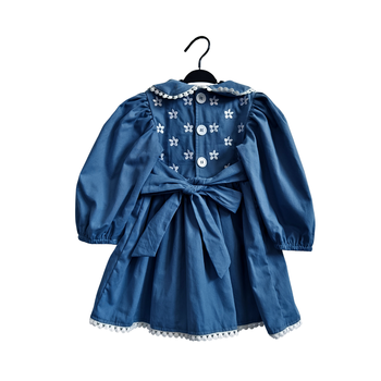 OEM Best Seller High Quality Puff Sleeve Embroidered Lace Lrimmings Fall Casual Girls' Dress