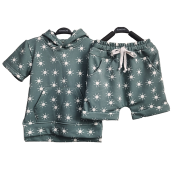 OEM High Quality Digital Print Hooded Cotton Sweatshirt Boys Summer Set 2 Piece Outfit Breathable Kids