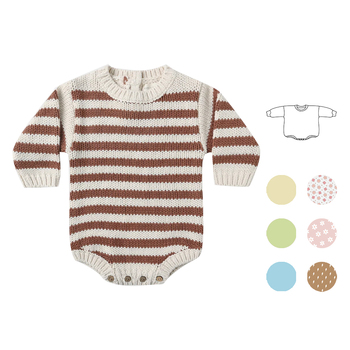 100% Cotton Knitted Baby Romper Long Sleeve Striped Infant Bodysuit One Piece Outfit